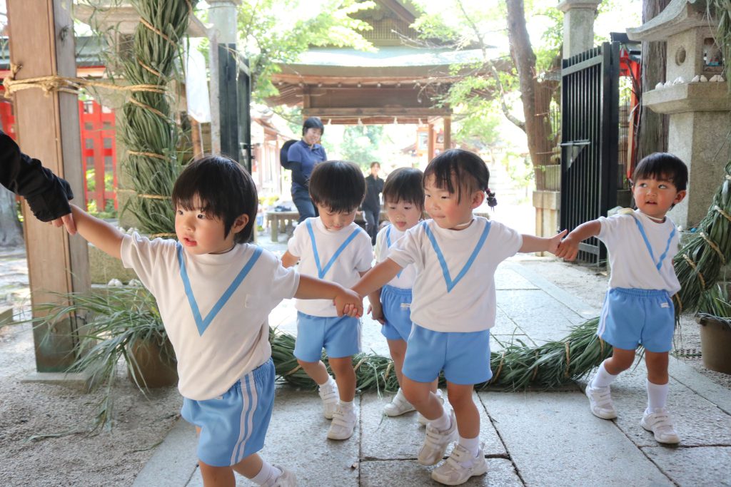 園児たちはお隣にある三宅八幡宮の茅の輪くぐりに行って