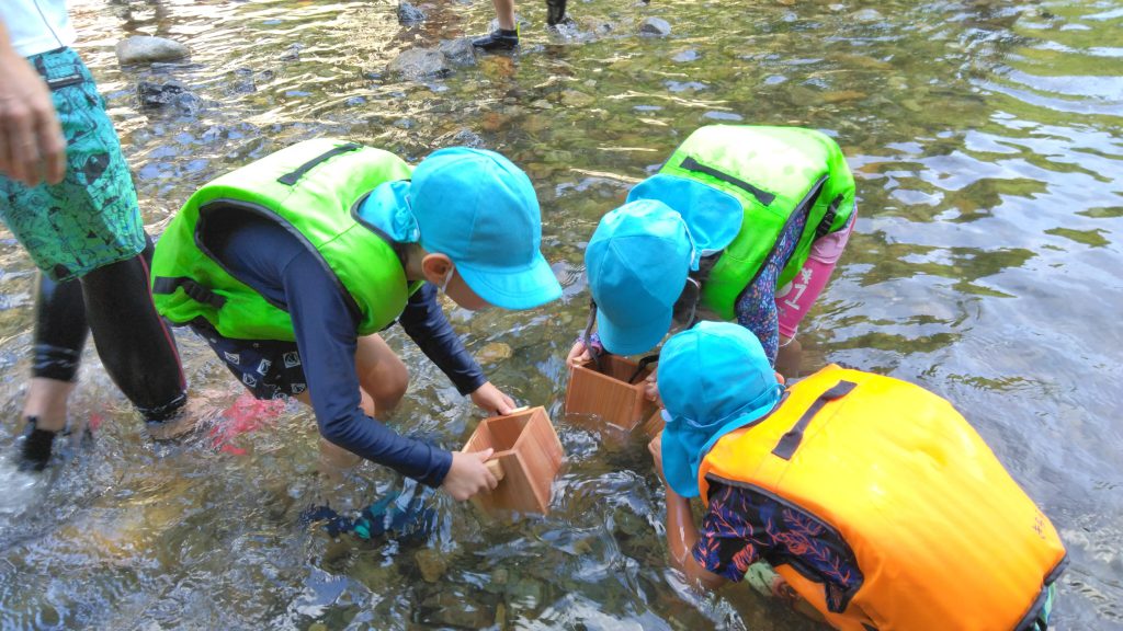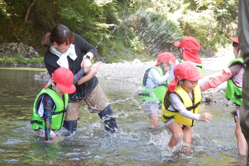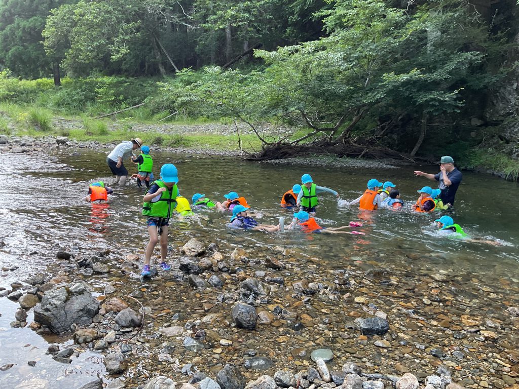 年少組は日帰りで川遊びを楽しみ、