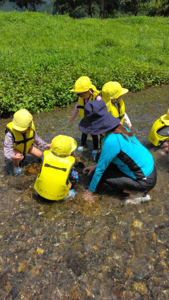 大好きな園バスに乗って川遊びに行きました
