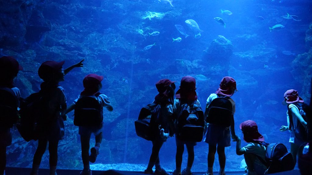 楽しみにしていたイルカのがっこうの時間は、かわいいイルカの技を見たり