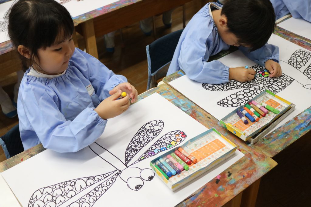 モノトーンだった画用紙がみるみる鮮やかになっていきます!