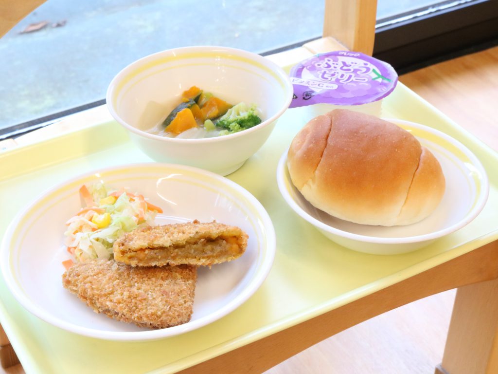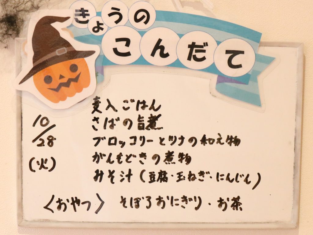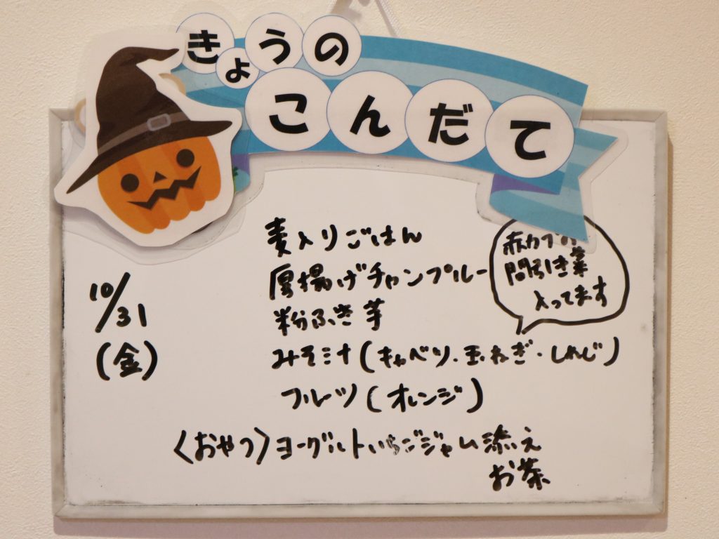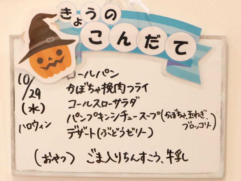 給食もハロウィンメニューだったので