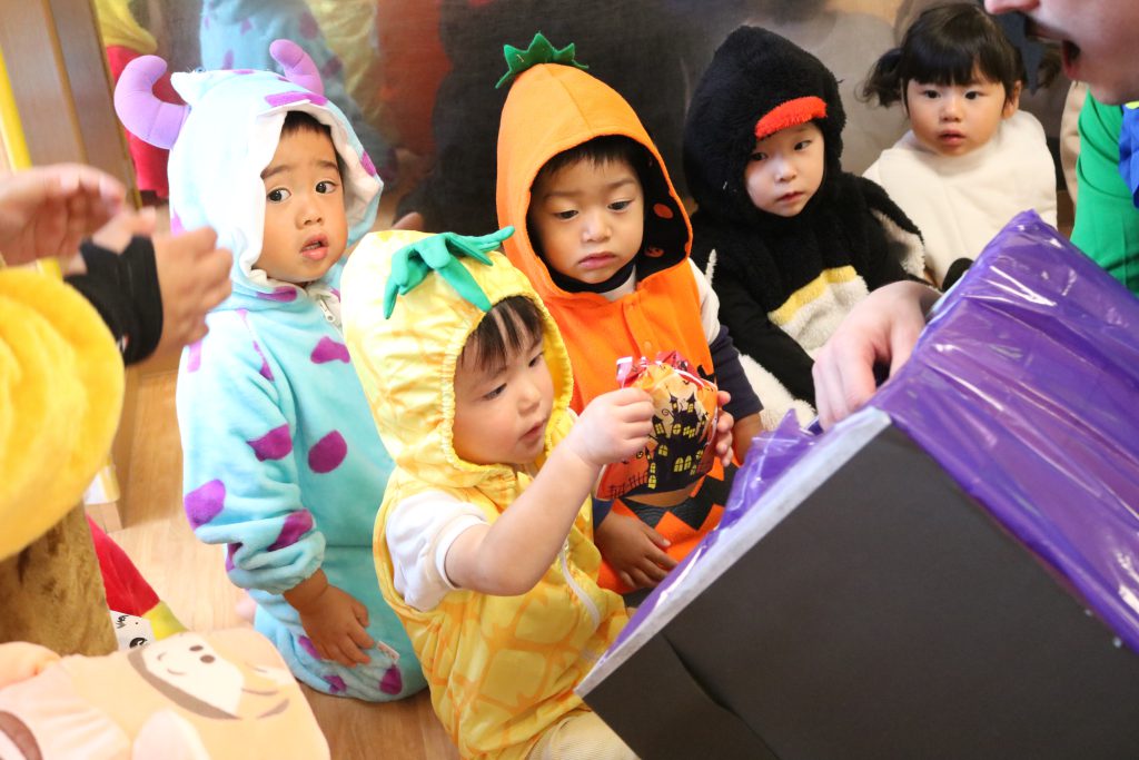 子どもたちはお家から持ってきた衣装に着替えて仮装をし