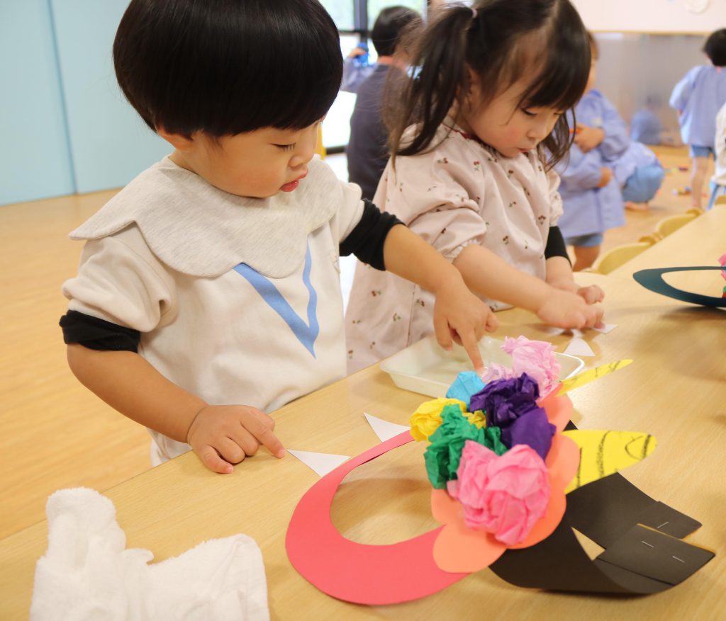 2歳児つぼみ組がなにか楽しそうなことをやっていました